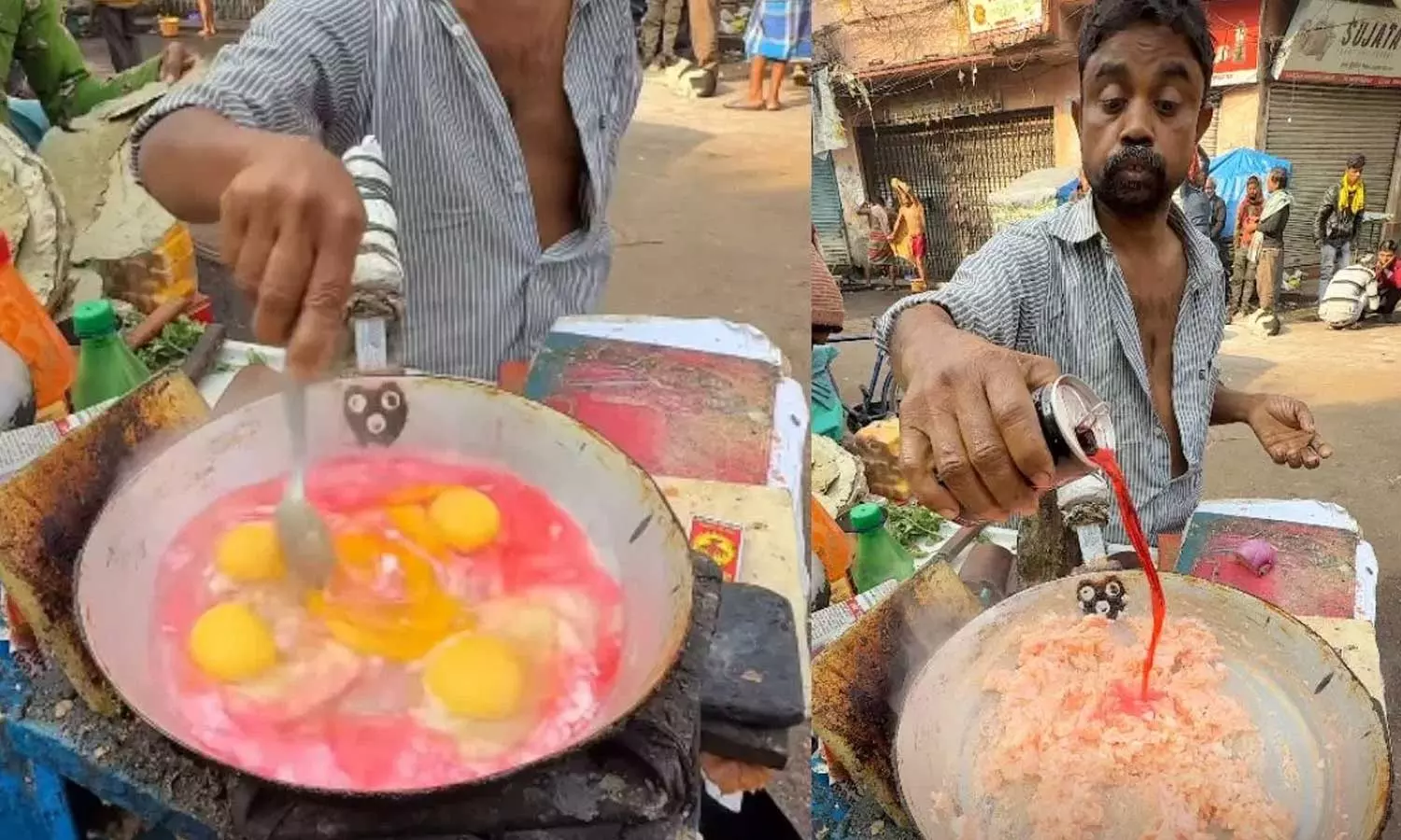 Viral Video: ప్రస్తుతం ఇన్స్టాగ్రామ్ లో ఒక వీడియో విపరీతంగా వైరల్ అవుతోంది. ఒక వ్యక్తి ఒక వీధి వ్యాపారి దగ్గరకు వెళ్లి, తన చేతిలో ఉన్న స్ట్రాబెర్రీ జ్యూస్ బాటిల్ ఇచ్చి దాంతో ఆమ్లెట్ వేయమని అడుగుతాడు. ఆ వ్యాపారి కూడా ఏమాత్రం ఆలోచించకుండా పని మొదలుపెట్టాడు. మామూలుగా ఆమ్లెట్ వేయాలంటే పెనం మీద నూనె లేదా వెన్న వేస్తారు. కానీ ఇక్కడ మాత్రం సీన్ రివర్స్. పెనం మీద ముందుగా స్ట్రాబెర్రీ జ్యూస్ పోశారు. ఆ జ్యూస్ మరుగుతుండగా అందులో ఒక్కొక్కటిగా ఏకంగా ఐదు గుడ్లు కొట్టి పోశారు. ఆ తర్వాత అందులో కొన్ని టమాటా ముక్కలు, మరికొన్ని సాస్లు కలిపి వింతగా ఆ మిశ్రమాన్ని ఫ్రై చేశారు. చివరికి ఆ ఎర్రటి స్ట్రాబెర్రీ ఆమ్లెట్ను ప్లేటులో పెట్టి ఆ కస్టమర్కు సర్వ్ చేశారు.