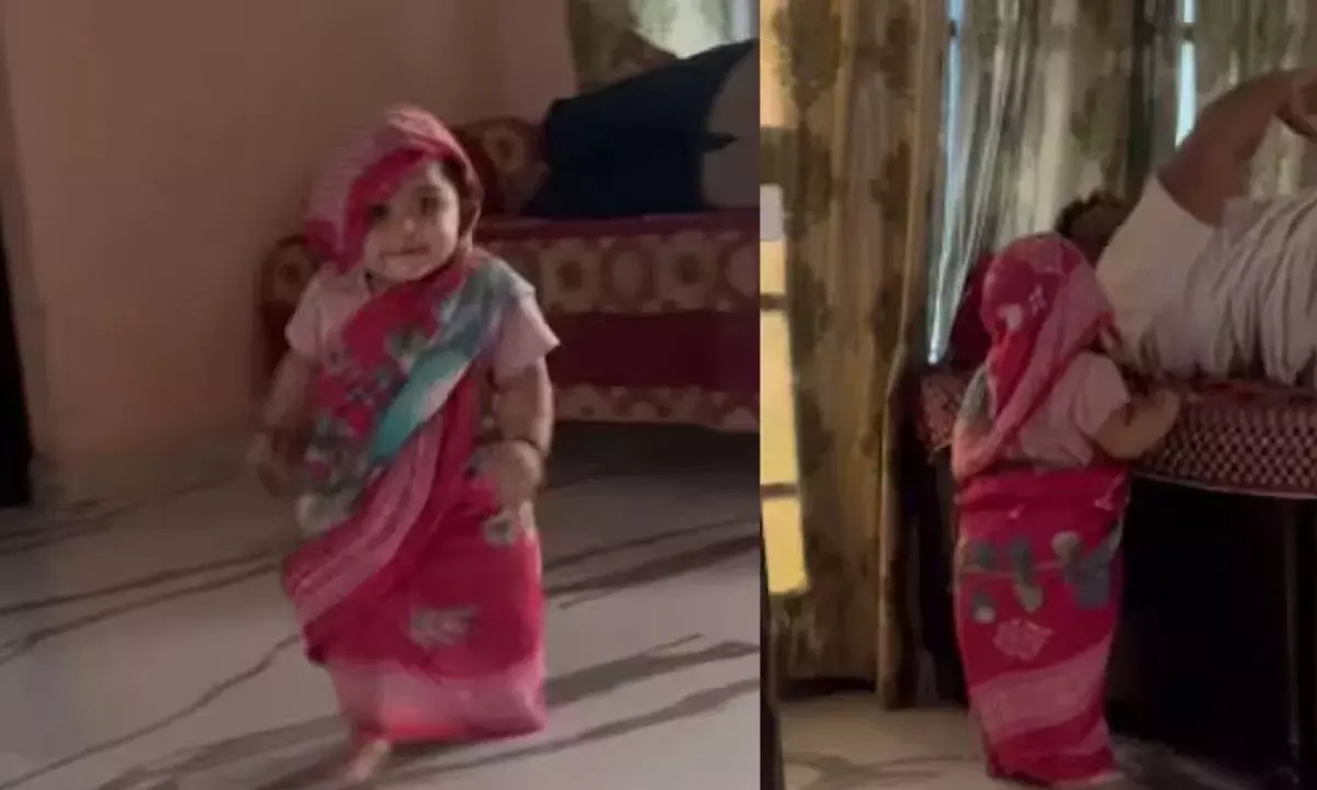 ఇన్స్టాగ్రామ్లో @gunjansingh6902 అనే అకౌంట్ నుండి షేర్ అయిన ఈ వీడియోలో ఒక చిన్నారి చక్కగా చీర కట్టుకుని ఇంట్లో తిరుగుతూ కనిపిస్తుంది. ఆమె చీరను రెండు చేతులతో పట్టుకుని, ఎంతో ఉత్సాహంగా అడుగులు వేస్తుంటే చూడటానికి రెండు కళ్లు సరిపోవు. ఏ మాత్రం తడబడకుండా, ఎంతో ఆత్మవిశ్వాసంతో ఆ చిన్నారి నడుస్తున్న తీరు ప్రతి ఒక్కరినీ ఆశ్చర్యానికి గురి చేస్తోంది. తన చీర అందాన్ని చూసుకుంటూ ఆమె మురిసిపోతున్న తీరు చాలా క్యూట్గా ఉంది.