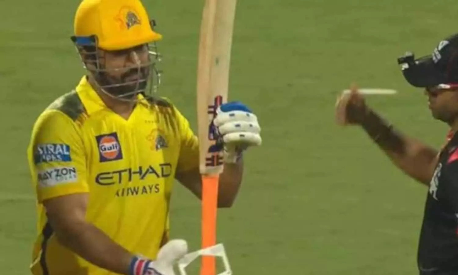 చెన్నై ఇన్నింగ్స్ 17వ ఓవర్లో లుంగి ఎన్గిడి అవుట్ అయిన తర్వాత మైదానంలోకి వచ్చిన ధోనీకి ఫీల్డ్ అంపైర్ బ్యాట్ గేజ్తో పరీక్ష నిర్వహించారు. ఆ గేజ్ ధోనీ బ్యాట్ను పూర్తిగా దాటలేదు. దీంతో ధోనీ తానే గేజ్ను తీసుకుని తన బ్యాట్ను పరిశీలించారు. అయినప్పటికీ, అంపైర్ నుంచి ఆమోదం లభించడంతో ధోనీ ఆ బ్యాట్తో ఆడేందుకు అనుమతిచ్చారు.
