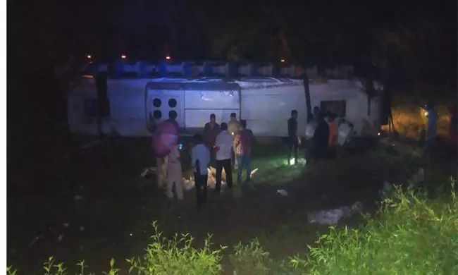బస్సు బోల్తా.. 10 మందికి తీవ్ర గాయాలు, పలువురి పరిస్థితి విషమం..