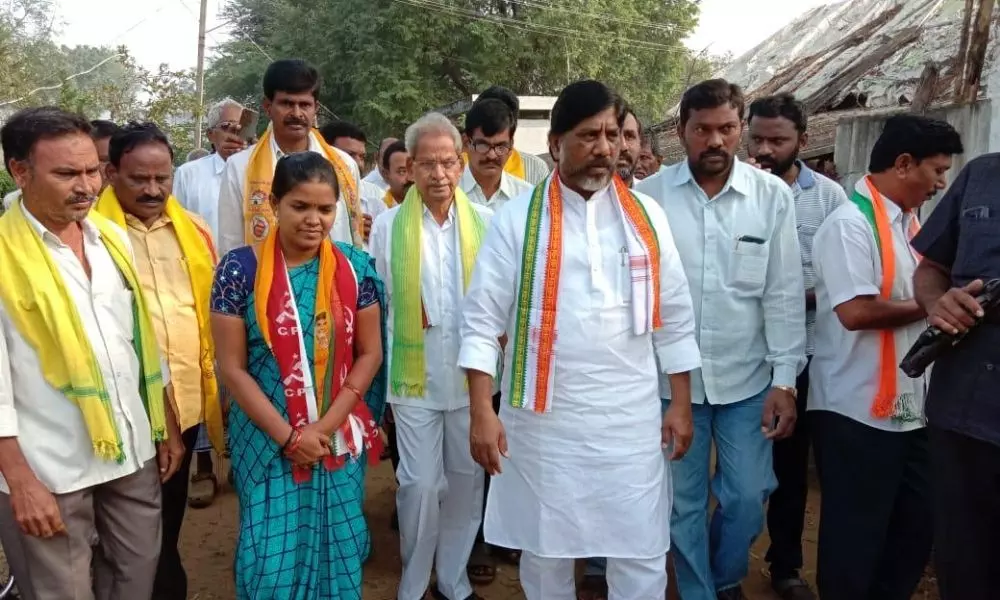 మధిర: మున్సిపాలిటీ పరిధిలోని 4 డివిజన్ ఇల్లందుల పాడు గ్రామంలో టిడిపి పార్టీ, కాంగ్రెస్ పార్టీ, సిపిఎం పార్టీ, కూటముల అభ్యర్థుల ఎన్నికల ప్రచారాన్ని ప్రారంభించిన తెలంగాణ సీఎల్పీ లీడర్ మల్లు భట్టి విక్రమార్క, టిడిపి జిల్లా అధ్యక్షులు డాక్టర్ రామనాథం. సిపిఎం పార్టీ సీనియర్ నాయకులు కట్ట గాంధీ, డివిజన్ లో పోటీచేసిన టిడిపి అభ్యర్థి తాళ్లూరి వెంకట కుమారి కి సైకిల్ గుర్తు పై ఓటు వేసి గెలిపించాలని వారు కోరారు.