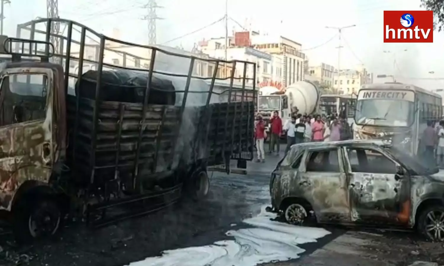 Sangareddy: డీసీఎం వాహనం లో అకస్మాత్తుగా మంటలు చెలరేగి అగ్నికి ఆహుతి అయింది. మంటలు వ్యాపించి పక్కనే ఉన్న కారు కాలిపోయింది. సంగారెడ్డి జిల్లా రామచంద్రపురం భీరంగుడ కమాన్ సమీపంలో జాతీయ రహదారి పై రసాయనాలతో నిండిన డ్రమ్ములు తీసుకెళ్తున్న డిసిఎం వాహనంలో అకస్మాత్తుగా మంటలు చెలరేగాయి. దీంతో డీసీఎం అగ్నికి ఆహుతయింది. పక్కనే వున్న మరో కారు కు మంటలు వ్యాపించడం తో కారు కూడా కాలిపోయింది. విషయం గ్రహించిన డీసీఎం డ్రైవర్ వాహనాన్ని పక్కకు అపడంతో ఎలాంటి ప్రాణ నష్టం జరగలేదు. అగ్నిప్రమాదం సమాచారం అందుకున్న ఫైర్ సిబ్బంది ఘటనా స్థలానికి చేరుకొని మంటలను అదుపు చేయడంతో పెను ప్రమాదం తప్పింది. జాతీయ రహదారి కావడం తో భారీగా ట్రాఫిక్ జామ్ అయింది.