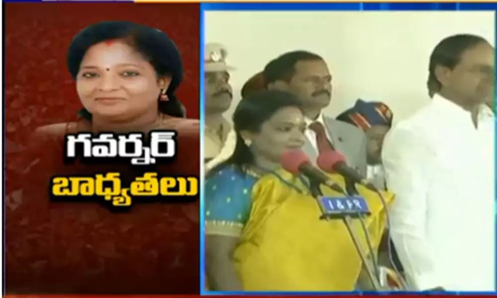 తెలంగాణ రెండో గవర్నర్గా డాక్టర్ తమిళిసై సౌందర్ రాజన్ ప్రమాణస్వీకారం చేసారు . రాజ్ భవన్ లో హైకోర్టు ప్రధాన న్యాయమూర్తి జస్టిస్ రాఘవేంద్రసింగ్.. తమిళి సైతో ప్రమాణస్వీకారం చేయించారు . ఈ ప్రమాణస్వీకార కార్యక్రమానికి ముఖ్యమంత్రి కేసీఆర్ ఇతర మంత్రులు హాజరయ్యారు . తెలంగాణా తొలి మహిళా గవర్నర్ గా తమిళిసై సౌందర్ రాజన్ గుర్తింపు సాధించారు .