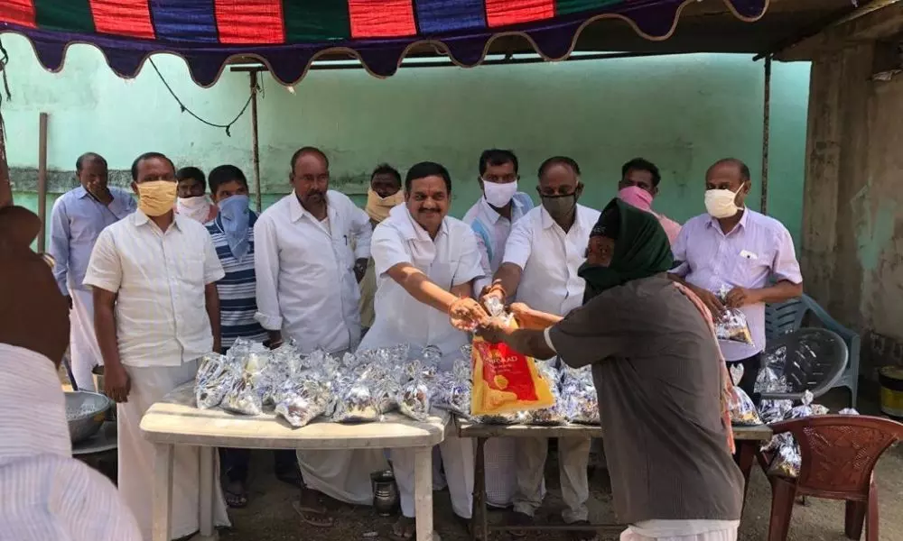 మేడిపల్లి: మండల కేంద్రంలో మాజీ సర్పంచ్ బొంగోని రాజగౌడ్ గారి ఆధ్వర్యంలో, జిల్లా పరిషత్ వైస్ ఛైర్మన్ హరిచరన్ రావు చేతుల మీదుగా బీహార్, మధ్య ప్రదేశ్, నుండి వచ్చిన సుమారు 80 మంది కూలీలకు, అనాధలకు బొజనం ప్యాకెట్లు పంపిణీ చేసారు. ఎల్లమ్మ తల్లి 17 వార్షికోత్సవం సందర్భంగా మేడిపల్లి గౌడ సంఘం 12వ రోజు అన్న దాతగా నిలిచారు.