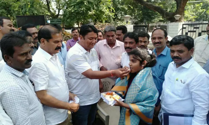 వరంగల్: వరంగల్ అర్బన్ జిల్లా హసన్ పర్తి మండల కేంద్రానికి చెందిన నిరుపేద ఆటో డ్రైవర్ మెకల రమేష్ రెండవ కూతురు అంజలి జేఈఈ లో అలిండియా ర్యాంక్ 2444 సాధించి మద్యప్రదేశ్ ఇండోర్ ఐఐటి లో బీటెక్ మొదటి సంవత్సరం సీటు సాధించింది. చదువుకునే ఆర్ధిక స్థోమత లేకపోవడం తో యూనియన్ నాయకత్వం మన తెలంగాణ ఆటో డ్రైవర్స్ యూనియన్ అధ్యక్షులు ప్రభుత్వ విప్ దాస్యం వినయ్ భాస్కర్ గారి ధృష్టికి తీసుకెళ్లడం వారు స్పంధించి ఆ అమ్మాయికి మొదటి సంవత్సరం ఫీజు మొత్తం 50వేల రూపాయలను వారి దయాహృదయం తో వ్యక్తి గతంగా నగదు అందజేశారు.