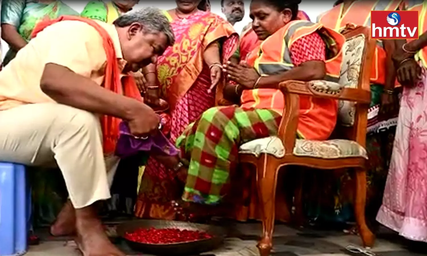 మహిళా దినోత్సవం రోజు కార్మికుల కాళ్లు కడిగిన గూడూరు