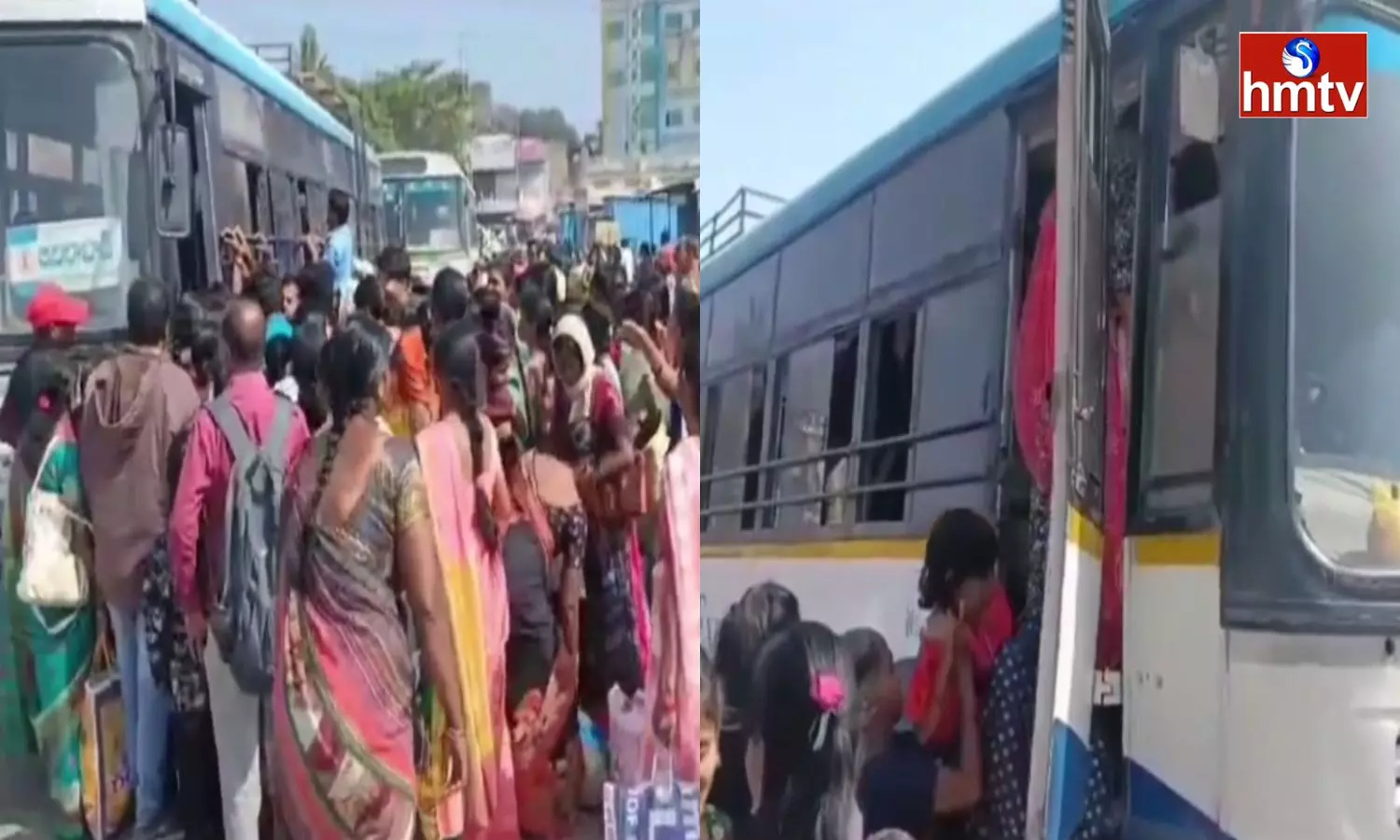 తెలంగాణ ఆర్టీసీ బస్సులకు పోటెత్తుతున్న మహిళలు