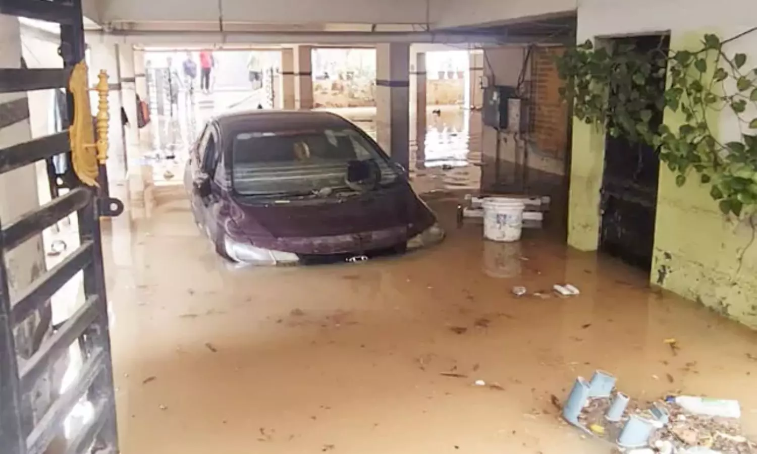 Manikonda: హైదరాబాద్ మణికొండలో కాలనీలను వరద ముంచెత్తింది. మణికొండలో భారీ పైప్లైన్ పగిలి కాలనీల్లోకి వరద వచ్చింది. సింగూరు నుంచి హైదరాబాద్కు తాగునీటిని తీసుకువచ్చే పైప్ లైన్ తెల్లవారుజామున పగిలిపోయింది. దీంతో అపార్ట్మెంట్ సెల్లార్లు వరద నీటితో నిండిపోయాయి. వాహనాలు నీటిలో మునిగిపోయాయి. సమాచారం అందుకున్న పోలీసులు, అగ్నిమాపక, హైడ్రా సిబ్బంది, మున్సిపల్ అధికారులు సహాయక చర్యలు చేపట్టారు. ఈ ఘటనతో రోడ్డు మొత్తం ధ్వంసం అయి రాకపోకలకు ఇబ్బందిగా మారింది.