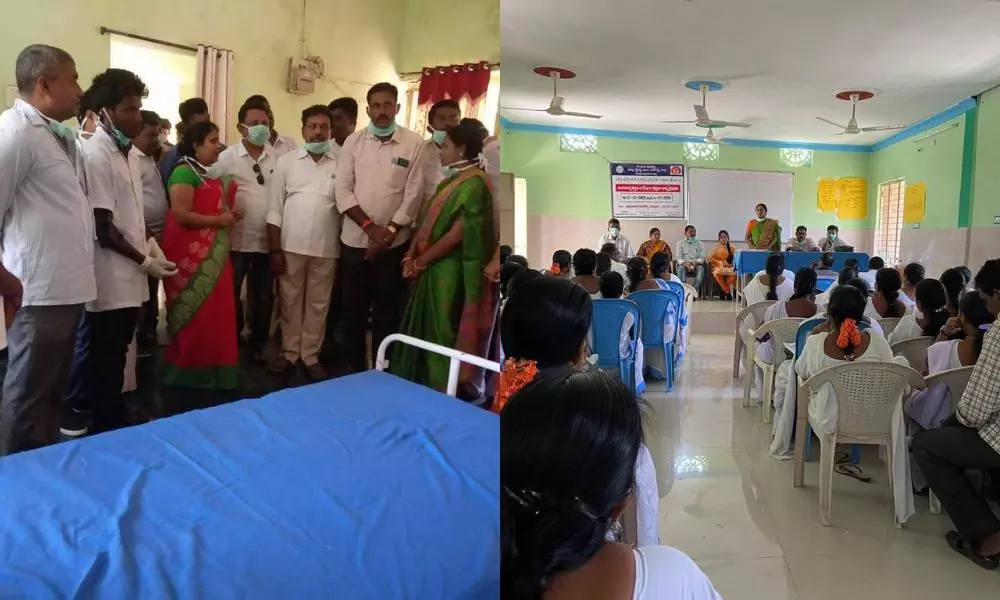 బూర్గంపహాడ్: ప్రపంచ దేశాలను వణికిస్తున్న కరోనా వైరస్ మన పక్క మండలం లో అయిన అశ్వాపురం మండలం లో నమోదు కావడం దురదృష్టకరమని ఎంపిపి, జెడ్పిటిసి అన్నారు. వేగంగా వ్యాప్తి చెందుతున్న కరోనా వైరస్ పట్ల సిబ్బంది అప్రమత్తంగా ఉండాలని ప్రభుత్వ విప్, పినపాక ఎమ్మెల్యే రేగా కాంతారావు, ఆదేశాలతో ఈరోజు మోరంపల్లి బంజర్ ప్రాథమిక ఆరోగ్య కేంద్రంలో ఎంపీపీ కైపు రోసిరెడ్డి, జడ్పిటిసి కామిరెడ్డి శ్రీలత ఆధ్వర్యంలో సిబ్బందికి అవగాహన సదస్సు ఏర్పాటు చేశారు.