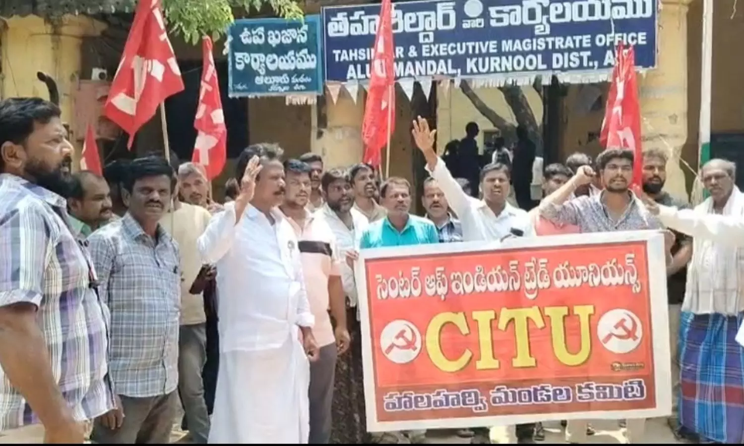 Alur: ఆలూరు తహసీల్దార్ కార్యాలయం ముందు సీఐటీయూ ధర్నా. చిరు వ్యాపారులపై గ్యాస్ దాడులు ఆపాలని, కమర్షియల్ సిలిండర్లు అందుబాటులోకి తేవాలని డిమాండ్.
