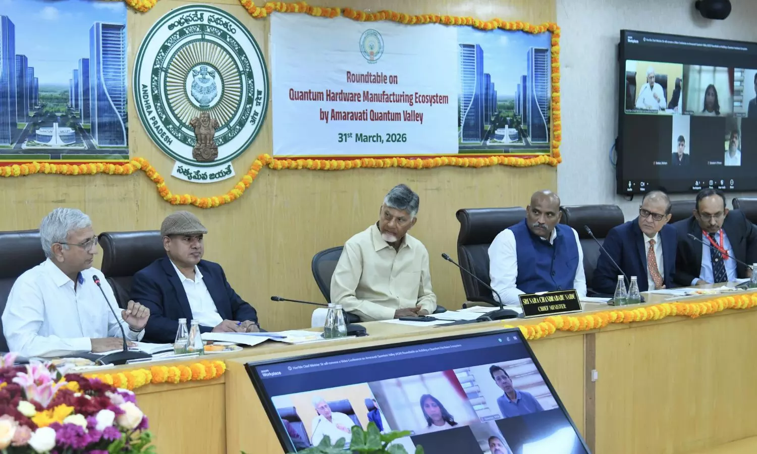 సచివాలయంలో జరిగిన క్వాంటం హార్డ్వేర్ మాన్యుఫాక్చరింగ్ ఎకోసిస్టమ్ రౌండ్ టేబుల్ సమావేశంలో కేంద్ర, రాష్ట్ర సంస్థలు, ఐబీఎం వంటి గ్లోబల్ కంపెనీలు పాల్గొన్నాయి. క్వాంటం పరికరాల తయారీ, క్రయోజనిక్స్, ఫోటోనిక్స్ రంగాల్లో స్వదేశీ ఉత్పత్తి లక్ష్యంగా నిర్ణయాలు తీసుకున్నారు.