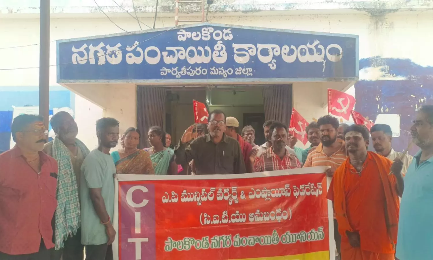 Palakonda: పాలకొండ మున్సిపాలిటీలో పని చేస్తున్న కాంట్రాక్ట్, ఔట్సోర్సింగ్ కార్మికులు తమ దీర్ఘకాలిక సమస్యల పరిష్కారం కోసం మున్సిపల్ కార్యాలయం ఎదుట ధర్నా నిర్వహించారు.