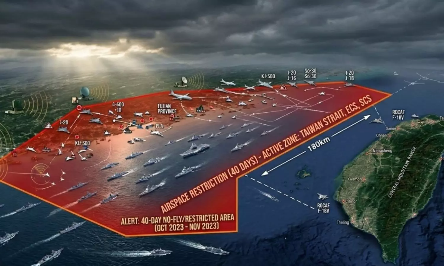 - 2 ప్రభుత్వ నౌకలు సముద్ర మధ్య రేఖను దాటి తైవాన్ ఉత్తర, తూర్పు వాయు రక్షణ మండలాల్లోకి (ADIZ) ప్రవేశించాయి. ఈ కారణంగా తైవాన్ సైన్యాన్ని అత్యంత అప్రమత్తం చేశారు.