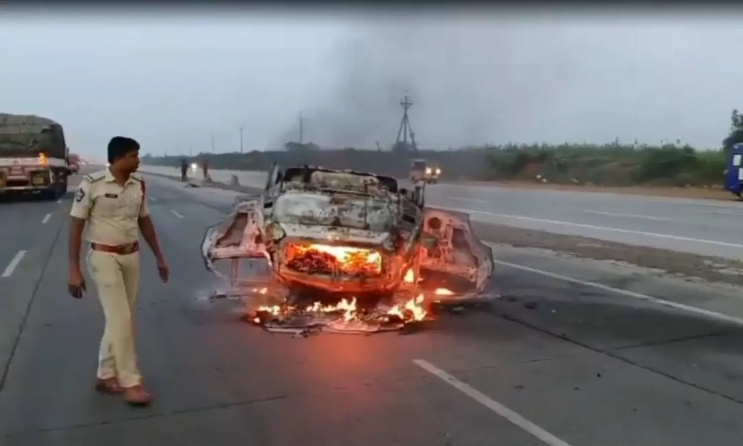 Prakasam: సింగరాయకొండ హైవేపై అగ్నిప్రమాదం.. మంటల్లో కాలిపోయిన కారు!