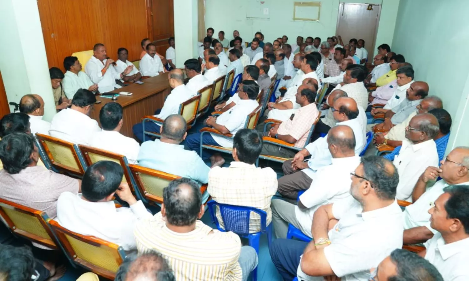 నల్గొండ జిల్లా: మిర్యాలగూడ మండలంలోని ధాన్యం కొనుగోలు ప్రారభించిన రైస్ మిల్లర్స్ సోమవారం సాయంత్రం రైతులకు, రైస్ మిల్లర్స్ కి జరిగిన వాగ్వాదం వలన ఈరోజు ధాన్యం కొనుగోలు నిలిపివేసి నిరసన చేపట్టిన రైస్ మిల్లర్స్ తో అత్యవసర సమావేశం ఏర్పాటు చేసిన జిల్లా జాయింట్ కలెక్టర్ శ్రీనివాస్ గారు, DSO గారు, శాసనసభ్యులు బత్తుల లక్ష్మారెడ్డి -BLR గారు, డీఎస్పీ రాజశేఖర్ రాజు గార్లు. ధాన్యం కొనుగోలు వెంటనే ప్రారంభించాలి అని అదేశించారు.. అలాగే రైతులకు మద్దతు ధర ఇవ్వడంతో పాటు.. రైతులతో మిల్లర్స్ సతప్రవర్త కలిగి ఉండాలని సూచించారు. వెంటనే స్పందించిన మిల్లర్స్ ధాన్యం కొనుగోలు ప్రారంభించారు.