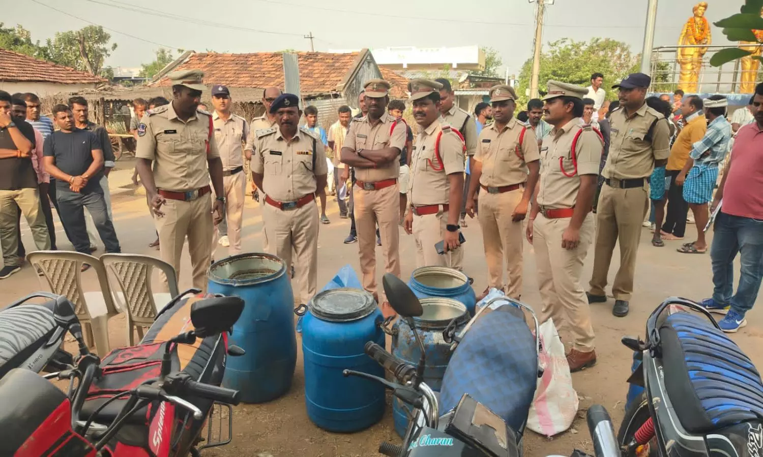 Mancherial: దేవులవాడలో పోలీసుల మెరుపు తనిఖీలు.. గుడుంబా స్థావరాలు ధ్వంసం, 37 వాహనాలు సీజ్!