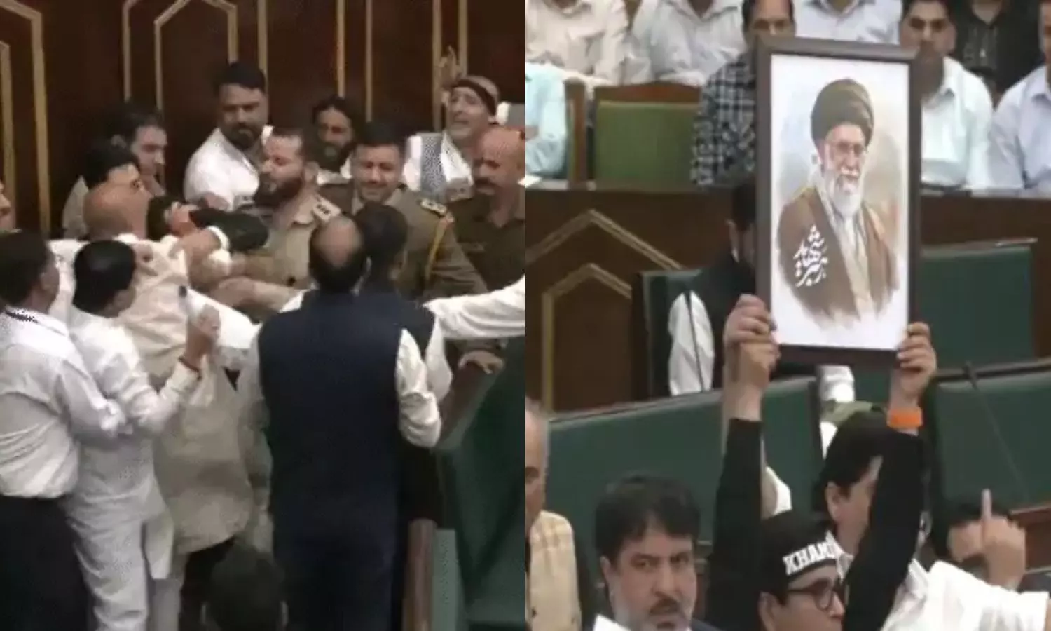 Jammu Kashmir: జమ్మూ కాశ్మీర్ అసెంబ్లీలో నేషనల్ కాన్ఫరెన్స్ నాయకులు ఖమేనీ చిత్రపటాన్ని ప్రదర్శించారు.