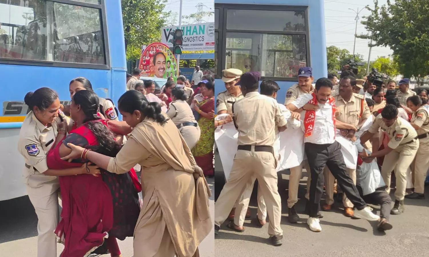 తెలంగాణ చౌక్ నుంచి మంత్రి నివాసం వరకు ర్యాలీగా బయలుదేరిన ఆశా కార్యకర్తలను పోలీసులు మార్గమధ్యలోనే అడ్డుకున్నారు. ఈ క్రమంలో పోలీసులు, నిరసనకారుల మధ్య తీవ్ర వాగ్వాదం, తోపులాట చోటుచేసుకుంది. శాంతిభద్రతల దృష్ట్యా పోలీసులు కార్యకర్తలను బలవంతంగా వాహనాల్లోకి ఎక్కించి స్థానిక పోలీస్ స్టేషన్కు తరలించారు. అక్రమ అరెస్టులతో ఉద్యమాన్ని ఆపలేరని ఈ సందర్భంగా నిరసనకారులు నినదించారు.