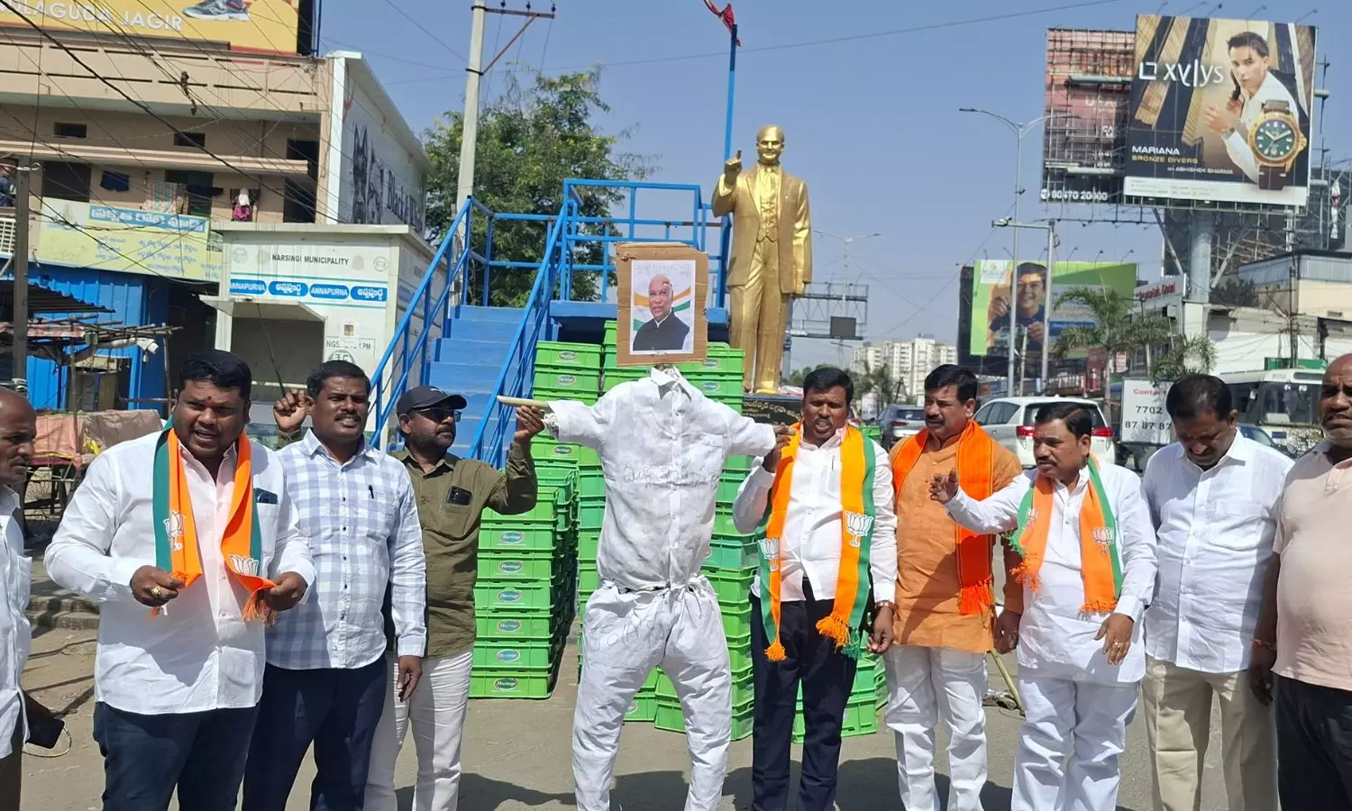 Narsingi: ఖర్గే దిష్టిబొమ్మ దహనం.. బీజేపీ, ఆర్ఎస్ఎస్ శ్రేణుల నిరసన!