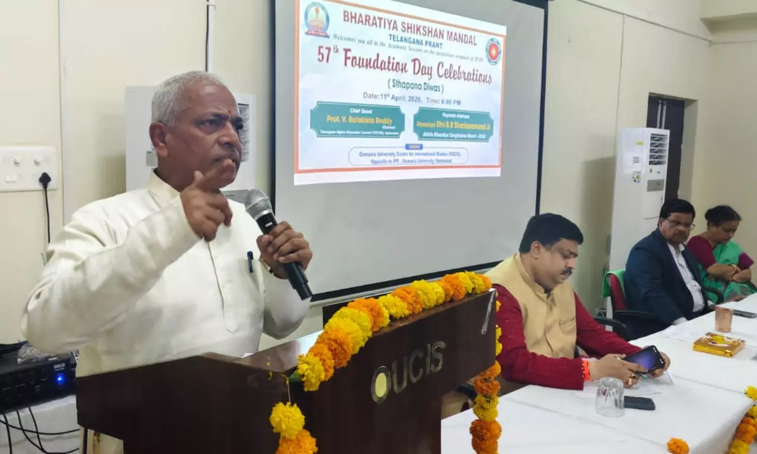 Osmania University: ఓయూలో జరిగిన బి ఎస్ ఎం 57వ స్థాపన దినోత్సవం మెకాలే విద్యా విధానాన్ని పారదోలి భారతీయ విద్యా విధానాన్ని తీసుకురావాల్సిన అవసరం ఉందని భారతీయ శిక్షణ మండలి ఆలిండియా ఆర్గనైజింగ్ సెక్రటరీ బిఆర్ శంకరానంద్ పేర్కొన్నారు. భారతీయ శిక్షణ మండలి 57వ ఫౌండేషన్ డే ని శనివారం ఉస్మానియా యూనివర్సిటీ లోని సెంటర్ ఫర్ ఇంటర్నేషనల్ స్టడీస్ హాలులో నిర్వహించారు.