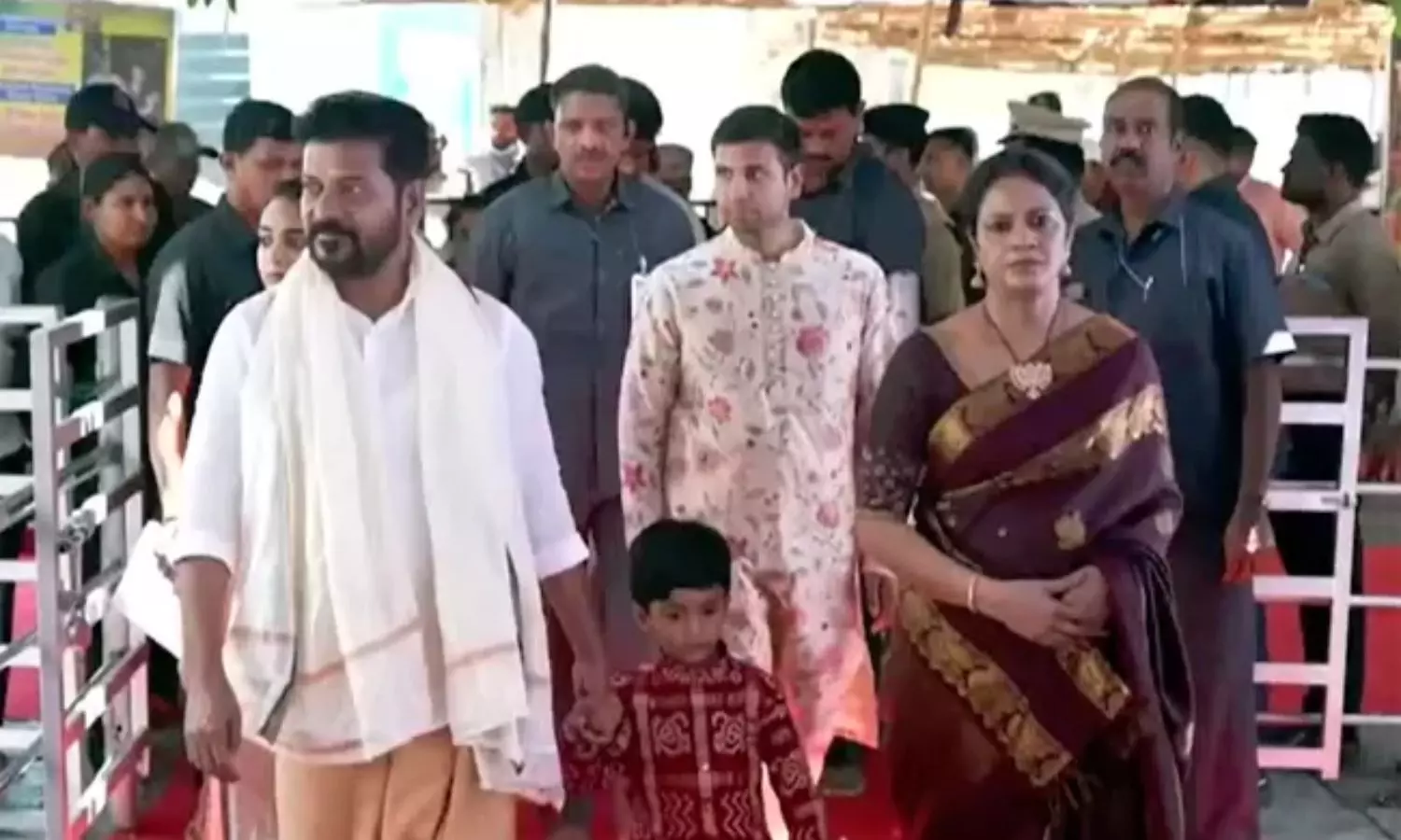 సీఎం రేవంత్ రెడ్డి బాసర చేరుకోగానే ఆలయ అధికారులు, అర్చకులు పూర్ణకుంభంతో ఘనస్వాగతం పలికారు. వేద మంత్రోచ్ఛారణల మధ్య అమ్మవారి ఆశీస్సులు తీసుకున్న ముఖ్యమంత్రికి అర్చకులు తీర్థ ప్రసాదాలు అందజేశారు.