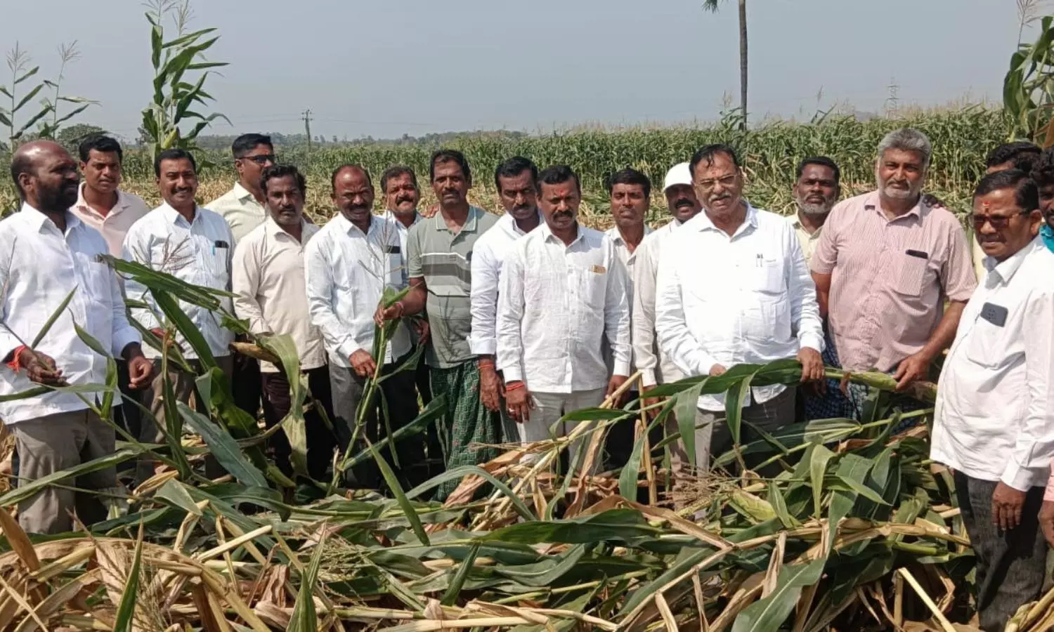 Peddapalli: ఇటీవల కురిసిన అకాల వర్షాలు, ఈదురు గాలులు అన్నదాతను నిలువునా ముంచాయి.పెద్దపల్లి జిల్లా కాల్వ శ్రీరాంపూర్ మండలంలోని మల్యాల (జగ్గయపల్లి) గ్రామాల్లో మొక్కజొన్న పంటలు భారీగా దెబ్బతిన్నాయి. దెబ్బతిన్న పంటలను పెద్దపల్లి మాజీ ఎమ్మెల్యే దాసరి మనోహర్ రెడ్డి మండల బిఆర్ఎస్ నాయకులతో కలిసి క్షేత్రస్థాయిలో పరిశీలించారు.