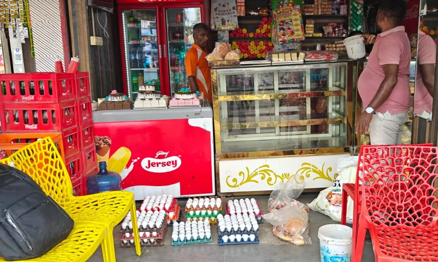 వస్తువులు నిల్వ ప్రాంతంలో 14 ట్రేలు పగిలిన గుడ్లు (మొత్తం 420 గుడ్లు) గుర్తించబడ్డాయి. ఈ పగిలిన గుడ్ల కారణంగా వంటగది ప్రాంతం మొత్తం ఈగలతో నిండిపోయింది.పగిలిన గుడ్లతో తయారు చేసిన సుమారు రూ. 7000 విలువైన కేకులు బేకరీలో ఉన్నట్లు గుర్తించారు. పాడైన గుడ్లు కేకులను అధికారులు అక్కడికక్కడే తొలగించి పారవేశారు. తనిఖీలలో సుమారు రూ. 9000 విలువైన నిల్వ ను అధికారులు తొలగించి వేశారు.