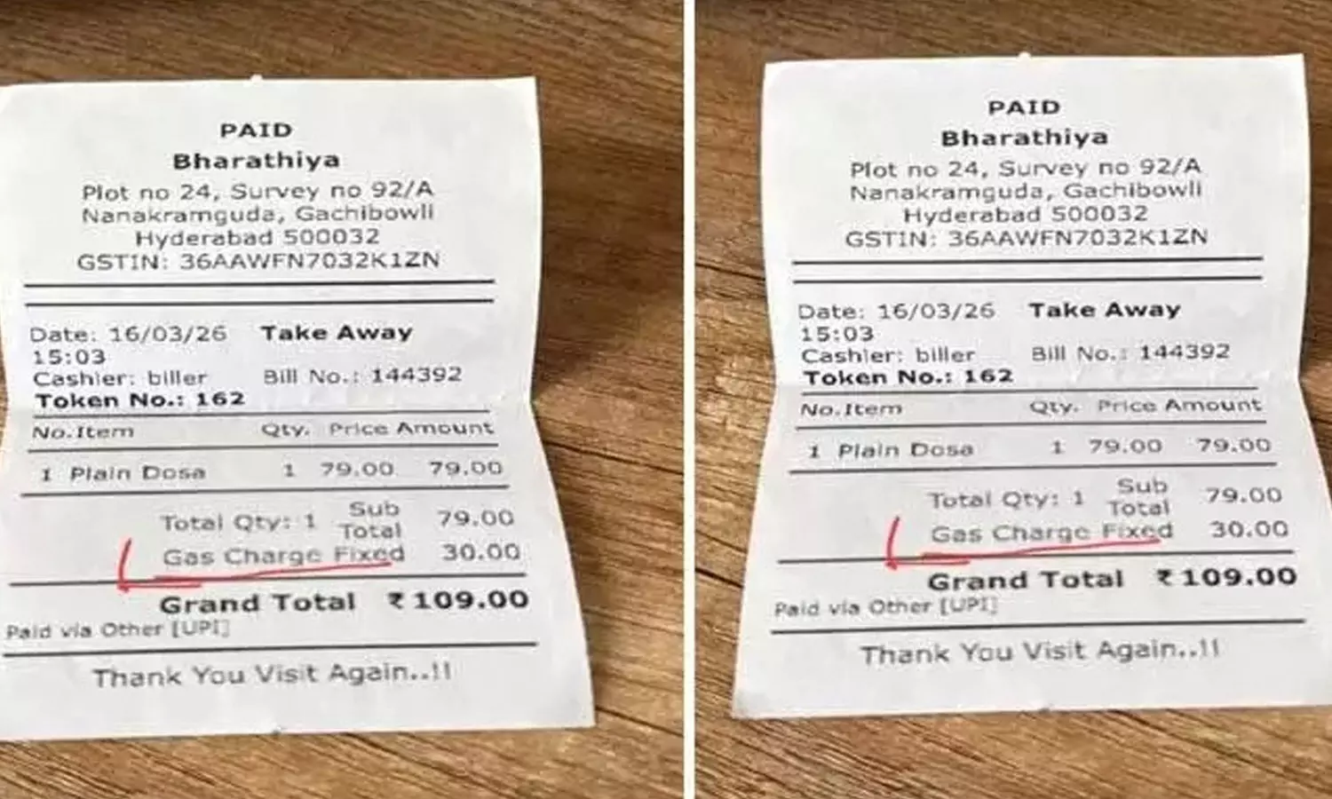 తనకు ఎదురైన ఈ వింత అనుభవాన్ని సదరు కస్టమర్ ఫోటో తీసి సోషల్ మీడియా వేదికగా పంచుకున్నారు. దోశ వేయడానికి వాడే గ్యాస్కు కూడా మేమే విడిగా డబ్బులు కట్టాలా? అంటూ ఆయన వేసిన ప్రశ్న ఇప్పుడు నెట్టింట వైరల్ అవుతోంది. గ్యాస్ కొరత ఉంటే ఆ భారాన్ని నేరుగా కస్టమర్లపై ఇలా వసూలు చేయడం ఎంతవరకు సమంజసమని నెటిజన్లు ప్రశ్నిస్తున్నారు.ఈ వింత ఛార్జీలు కేవలం హైదరాబాద్కే పరిమితం కాలేదు. ప్రస్తుతం దేశవ్యాప్తంగా నెలకొన్న ఎల్పీజీ సరఫరాలో ఇబ్బందులను సాకుగా చూపుతూ పలు నగరాల్లో రెస్టారెంట్లు ఇలాంటి వినూత్న బాదుడుకు తెరలేపాయి.