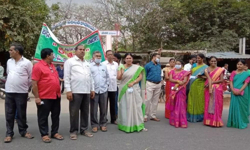 పొదిలి: మండలం కంభలపాడు గ్రామంలోని బెల్లంకొండ నగర్ లోని బిట్స్ ఫార్మసీ కాలేజీ వారు, కరోనా వైరస్ పై అవగాహనా ర్యాలీని ఆధ్వర్యం మహిళలలో అవగాహన ర్యాలీ నిర్వహించారు. ఈ సందర్భగా మహిళలలను, ప్రజలను ఉద్దేశించి బిట్స్ సంస్థల అధినేత డా. బెల్లంకొండ శ్రీనివాసరావు ప్రసంగిస్తూ... ప్రపంచ ప్రముఖ శాస్త్ర వేత్తలు సహితం ప్రపంచ వైద్య విధానం వైపు దృష్టి పెట్టినట్లు అనేక వైరస్ లకు పరిష్కారమార్గాలు భారతీయ ప్రాచీన వైద్య విధానం లో ఉన్నట్లు కనుగొన్నారన్నారు.
