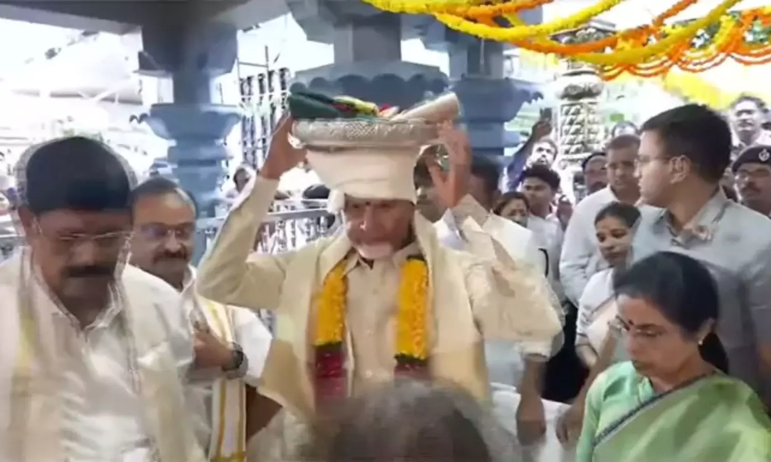Chandrababu: కనకదుర్గమ్మకు పట్టువస్త్రాలు సమర్పించిన సీఎం చంద్రబాబు