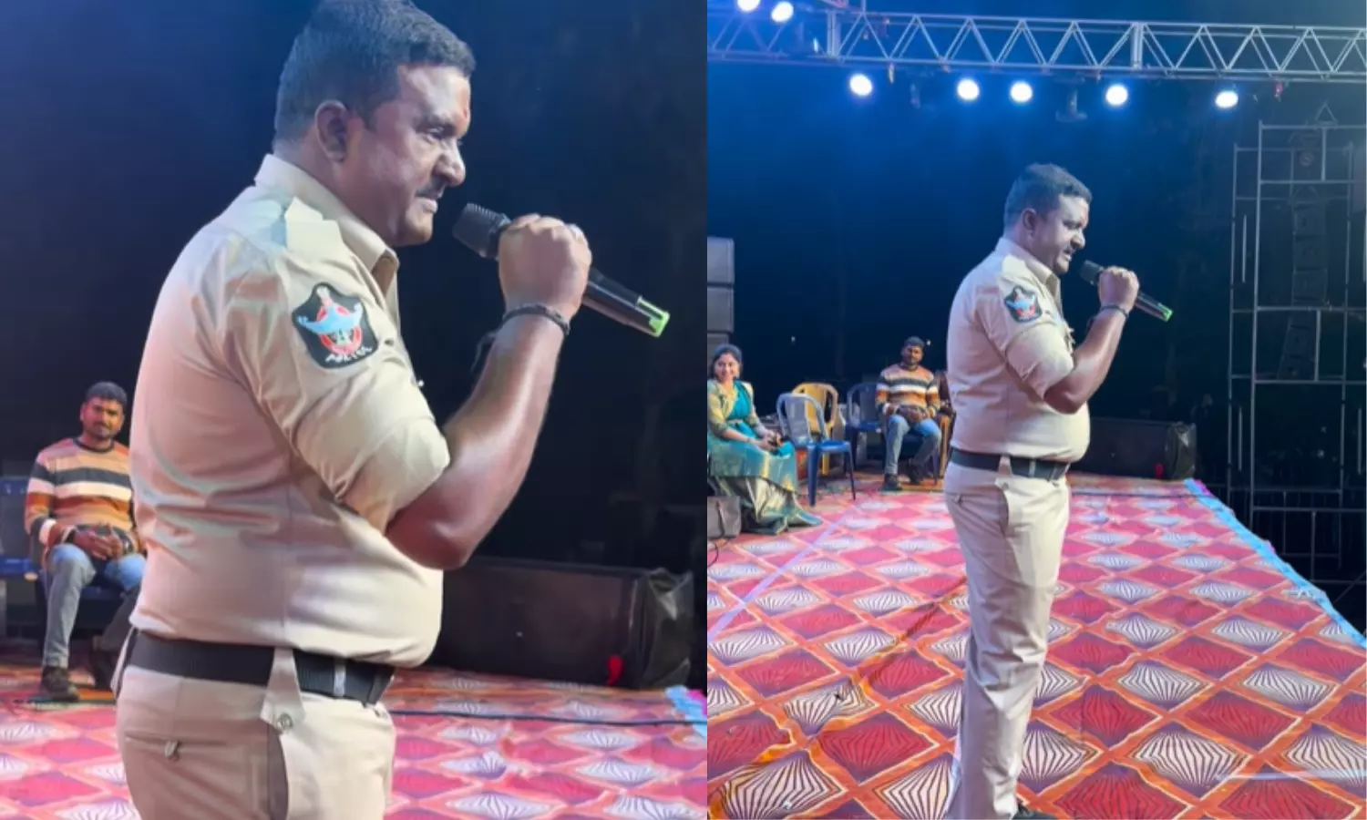 ఆ సమయంలో అక్కడ విధుల్లో ఉన్న కానిస్టేబుల్ వెంకటరమణకు పాట పాడాలన్న ఆసక్తి కలగడంతో రాజాం సీఐ ఉపేంద్రను కోరారు. ఆయన అనుమతితో వేదికపైకి వచ్చిన వెంకటరమణ ‘శ్రీతుంబర నారద నాథామృతం’ అనే పాటను ఆలపించారు.