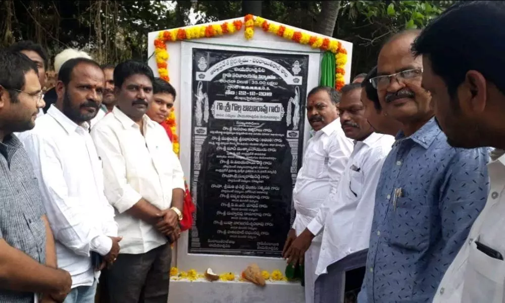 పాయకరావుపేట: పట్టణంలో గ్రామ సచివాలయానికి స్థానిక ఎమ్మెల్యే గొల్ల బాబురావు శంకుస్థాపన చేశారు. పట్నంలో ఐదు సచివాలయానికి నిర్మాణానికి గాను, తొలుత జి.వి.ఆర్ నగర్ లో సచివాలయానికి శంకుస్థాపన చేపట్టారు. ఈ సందర్భంగా బాబురావు మాట్లాడుతూ... సీఎం జగన్ సచివాలయ వ్యవస్థకు శ్రీకారం చుట్టి, ప్రతి గ్రామంలోనూ సచివాలయాలు ఏర్పాటుకు, ఉద్యోగ నియమకాలను చేపట్టారని అన్నారు.