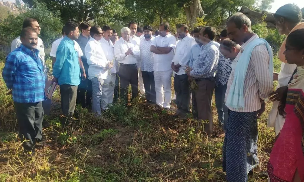 తెగుళ్లు సోకి దెబ్బతిన్న వేరుశనగ పంటలను పరిశీలించిన ప్రభుత్వ చీఫ్ విప్: శ్రీకాంత్ రెడ్డి