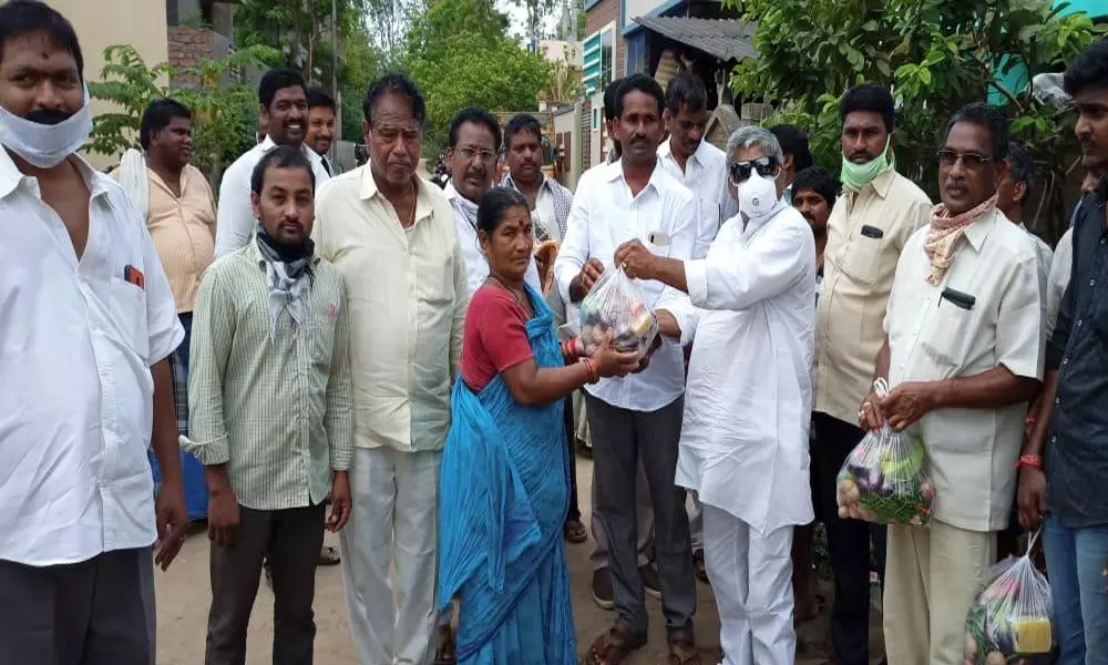 జగ్గంపేట: యావత్ ప్రపంచాన్ని గడగడలాడిస్తున్న కరోనా వైరస్ విజృంభిస్తున్న నేపథ్యంలో కాట్రావులపల్లి గ్రామంలో తెలుగుదేశం పార్టీ మాజీ ఎమ్మెల్యే జ్యోతుల నెహ్రూ చేతుల మీదుగా ఇంటి నుండి బయటకు రాకుండా నివసిస్తున్న పేద ప్రజలకు సుమారు నాలుగువేల కుటుంబాలకు కూరగాయలు చింత పండు, బెల్లం, టీ, పొడి నిత్యావసర వస్తువులు అందజేశారు.