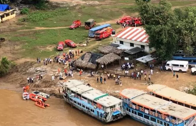 బాలాజీ మెరైన్స్ సంస్థ 22 లక్షల 70 వేలకు బోటును పైకి తీసేందుకు ఒప్పందం కుదుర్చుకుంది.. ఒక క్రేన్, పొక్లెయిన్, 2వేల మీటర్ల వైర్ రోప్, 2 లంగర్లు, 10 జాకీలతోపాటు ఇంకొన్ని భారీ తాళ్లు, సామాగ్రిని కలిగి ఉన్నా ఆ ఆపరేషన్ దాదాపు ముగిసినట్టే కనిపిస్తోంది. 250 అడుగుల లోతులో ఇసుకలో కూరుకుపోయిన బోటును బయటకు తీసుకురావడంలో బాలాజీ మెరైన్స్ సంస్థ విఫలమైంది. దీనికి కారణం బోటుకు లంగర్ వేస్తుంటే బండరాళ్ళకు తగిలి తెగిపోతోంది. మరోవైపు వేగంగా వస్తున్న వరదతో రోప్ కదిలిపోతుండడంతో ఆపరేషన్ కష్టమైంది. కాగా సెప్టెంబర్ 15న ప్రమాదం జరిగింది. వీరిలో 26 మంది ప్రాణాలతో బయటపడగా.. 36 మృతదేహాలను బయటకుతీశారు. మిగతా 14 మంది కోసమే రెస్క్యూ ఆపరేషన్ కొనసాగిస్తున్నారు.