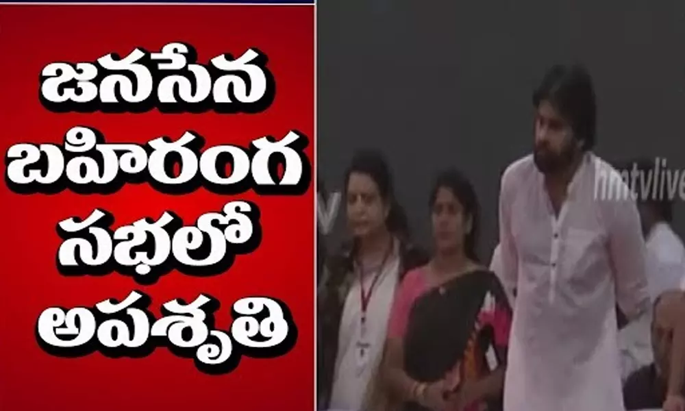 విశాఖలో జనసేన లాంగ్ మార్చ్ సభలో అపశృతి చోటు చేసుకుంది. సభా వేదిక దగ్గర ఏర్పాటు చేసిన బారికేడ్లకు విద్యుత్ ప్రవహించడంతో ఇద్దరు పవన్ అభిమానులు గాయపడ్డారు. వెంటనే అప్రమత్తమైన నిర్వాహకులు జనరేటర్ ను నిలిపి వేసి విద్యుత్ సప్లై ఆపేశారు. స్పందించిన పోలీసులు భుజాన వేసుకుని అంబులెన్స్ లో ఎక్కించి ఆసుపత్రికి తరలించారు. ప్రాణాపాయం నుండి బయటపడ్డారు.