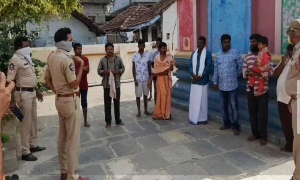 భజనలు చేస్తున్నారనే సమాచారం అందుకున్న పోలీసులు హుటాహుటిన గుడికి చేరుకున్నారు. ప్రస్తుతం అమలులో ఉన్న నిబంధనలను పాటించకుండా భజన చేయడం సరికాదని పోలీసులు హెచ్చరించారు.