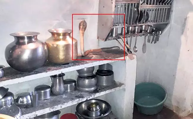 ఈ మధ్య కాలంలో విపరీతంగా పాములు జనావాసాల్లో తిరుగుతున్నాయి. వర్షాలు పడడంతో రంద్రాల్లో ఉండలేక ఇళ్లలోకి వచ్చేస్తున్నాయి. కందుకూరులోని ఓ ఇంట్లో నాగుపాము ప్రత్యక్షమైంది. టీ పెట్టేందుకు వంటగదిలోకి వెళ్లిన ఇల్లాలు బుసలు కొడుతున్న నాగుపామును చూసి జడుసుకుంది. భయంతో పరుగున బయటికి వచ్చి కుటుంబసభ్యులకు చెప్పింది. దాంతో వారు వంటగదిలోకి వెళ్లి చూడగా ప్లాట్ఫారం మీద నాగుపాము పడగ విప్పి కనిపించింది. పామును ఇంట్లోంచి బయటకు వెళ్లగొట్టేందుకు గంటలతరబడి శ్రమించాల్సి వచ్చింది. కాగా అధికారులు కూడా పాముల విషయంలో జాగ్రత్త వచించాలని హెచ్చరిస్తున్నారు. వర్షాకాలంలో పల్లెటూళ్లలో ఎక్కువగా పాములు ఇళ్లల్లోకి వస్తాయని చెబుతున్నారు.