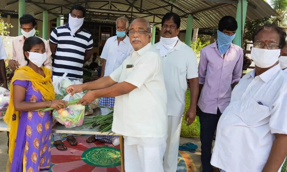మండలంలోని పల్లంకుర్రులో అల్లూరి సీతారామరాజు క్షత్రియ సేవ సమితి అద్వర్యంలో కూరగాయలను పంపిణి చేసారు.