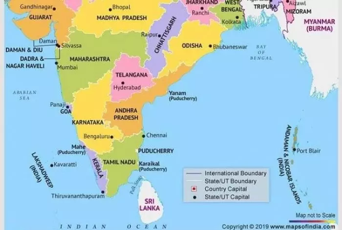 తెలంగాణ రాజధాని హైదరాబాద్. తమిళనాడుకు చెన్నై.. మహారాష్ట్రకు ముంబై.... కర్నాటకకు బెంగళూరు, మరి ఆంధ్రప్రదేశ్కు రాజధాని ఉన్నట్టా... లేనట్టా? ఉంటే ఎక్కడ ఉంది.? అదేంటి అమరావతి ఉంది కదా అంటారా? నిజమే కావచ్చు కానీ ఇది మనకు మనం అనుకునే రాజధాని మాత్రమే. అధికారంగా మాత్రం కాదు. ఎందుకంటే తాజా మ్యాప్లో ఆంధ్రప్రదేశ్ రాజధానిగా అమరావతికి చోటు దక్కలేదు. అవును మీరు విన్నది నిజమే.. కేంద్ర ప్రభుత్వం విడుదల చేసిన భారతదేశ చిత్రపటంలో ఆంధ్రప్రదేశ్ రాజధాని అమరావతిని నోటిఫై చేయలేదు. దేశంలోని అన్ని రాష్ట్రాలు, ఆయా రాష్ట్రాల రాజధాని నగరాలను గుర్తించిన కేంద్రం.. ఆంధ్రప్రదేశ్ రాష్ట్రంలో ఎలాంటి రాజధాని నగరాన్ని గుర్తించకుండా మ్యాప్లు విడుదల చేయడం ఇప్పుడు చర్చనీయాంశమైంది.
