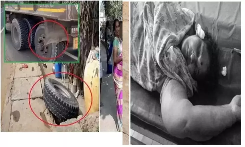 విశాఖ జిల్లాలో విషాదం నెలకొంది. తుని నుండి విశాఖ వెళ్తున్న లారీ నక్కపల్లి వద్దకు చేరుకోగానే వెనుక టైర్ ఊడిపోయింది. నీటి కోసం వెళ్తున్న మహిళకు ఆ టైర్ బలంగా తగలింది. దీంతో మహిళకు తీవ్ర గాయాలయ్యాయి. అయితే బాధితురాలిని చికిత్స నిమిత్తం ఆస్పత్రికి తరలించేలోగా మార్గమధ్యలో మృతి చెందింది. విషయం తెలుసుకున్న పోలీసులు ఘటనా స్థలానికి చేరుకొని కేసు నమోదు చేసుకొని దర్యాప్తు చేపట్టారు. పోలీసులు లారీ డ్రైవర్ను అదుపులోకి తీసుకున్నట్లు తెలుస్తోంది. లారీ టైర్ విడిపోవడానికి కారణాలపై ఆరా తీస్తున్నారు. కుళాయి దగ్గర నీళ్ల కోసం వెళ్లి ఇలా మహిళ ప్రాణాలు కోల్పోవడంతో స్థానికంగా తీవ్ర విషాదాన్ని నింపింది.
