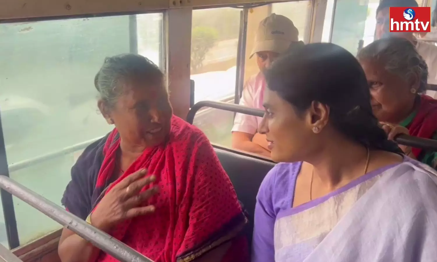 శ్రీకాకుళం జిల్లాలో పర్యటిస్తున్న షర్మిల కంచిలి దగ్గర ఆర్టీసీ బస్ ఎక్కారు. బస్లో ప్రయాణికులతో ముచ్చటించారు. అమ్మఒడి అందుతుందా లేదా అని ప్రయాణికులను అడిగి తెలుసుకున్నారు. పలువురు మహిళలను ఇళ్ల స్థలాలు అందాయా లేదా అని అడిగి తెలుసుకున్నారు.