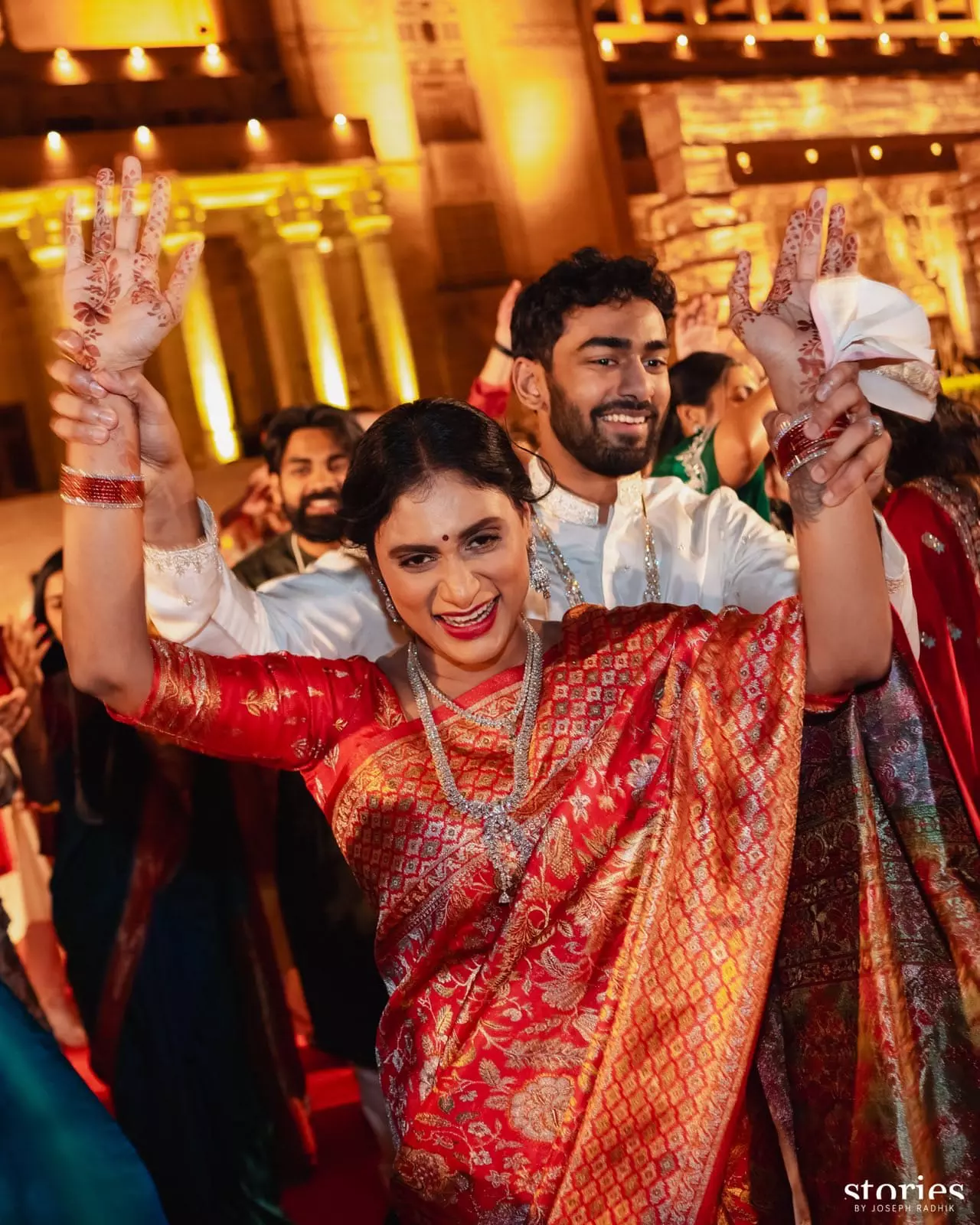 YS Raja Reddy Marriage: ఏపీ కాంగ్రెస్ అధ్యక్షురాలు వైఎస్ షర్మిల కుమారుడు వైఎస్ రాజారెడ్డి- ప్రియా అట్లూరిల వివాహం అంగరంగ వైభవంగా జరిగింది. రాజస్థాన్లోని జోథ్పూర్ ప్యాలెస్ వేదికగా జరిగిన ఈ వేడుకకు అతికొద్ది మంది మాత్రమే హాజరయ్యారు. ప్రస్తుతం ఇందుకు సంబంధించిన ఫొటోలు సోషల్ మీడియాలో వైరల్ అవుతున్నాయి.