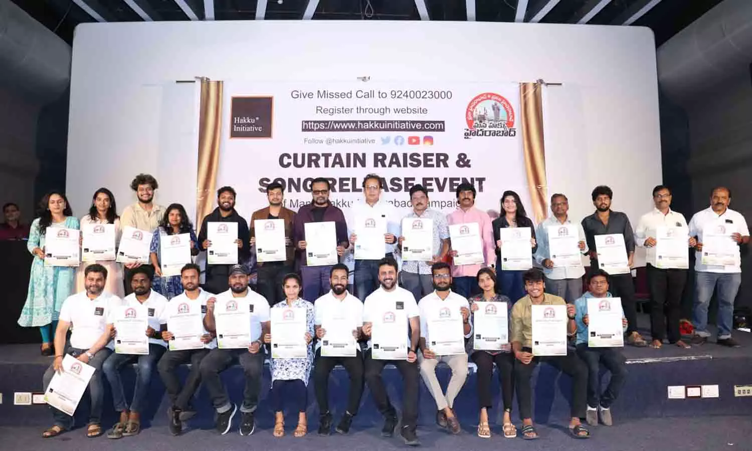 Hakku Initiative Hyderabad: ప్రజల, ప్రభుత్వ భాగస్వామ్యంతో సామాజిక చైతన్యాన్ని కలిగించే పలు కార్యక్రమాలు చేపడుతున్న హక్కు ఇనిషేటివ్ సంస్థ మన హక్కు హైదరాబాద్ కర్టెన్ రైజర్ ప్రచార గీతాన్ని శుక్రవారం ప్రముఖ సంగీత దర్శకుడు కోటి చేతుల మీదుగా హైదరాబాద్ ప్రసాద్ ల్యాబ్స్ లో ఆవిష్కరించారు.