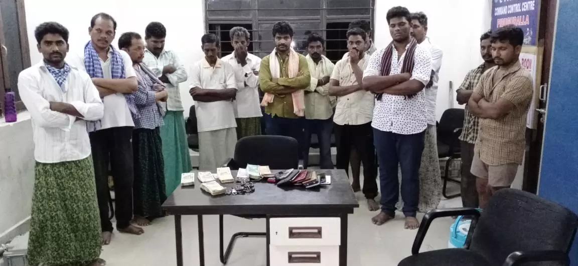 - జూదం ఆడుతున్న పదిహేను మంది వ్యక్తులను అదుపులోకి తీసుకున్ప పోలీసులు.