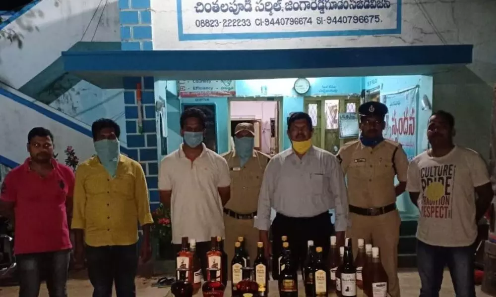 పోలీస్ స్టేషన్ పరిధిలో తెలంగాణ నుండి ఉంగుటూరు, నూజివీడు, ఏలూరు తదితర ప్రాంతాలకు అక్రమంగా మద్యం తరలిస్తున్న 9 మంది వ్యక్తులను చింతలపూడి సిఐ పి.రాజేష్, ఎస్ఐ కెసిహెచ్ స్వామి, వారి సిబ్బంది అదుపులోకి తీసుకుని ఒక కారు, ఐదు ద్విచక్ర వాహనములు, 70 మద్యం సీసాలు, రెండు వేల రూపాయలు స్వాధీనం చేసుకుని కేసు నమోదు చేసినట్లు పోలీసులు తెలిపారు.