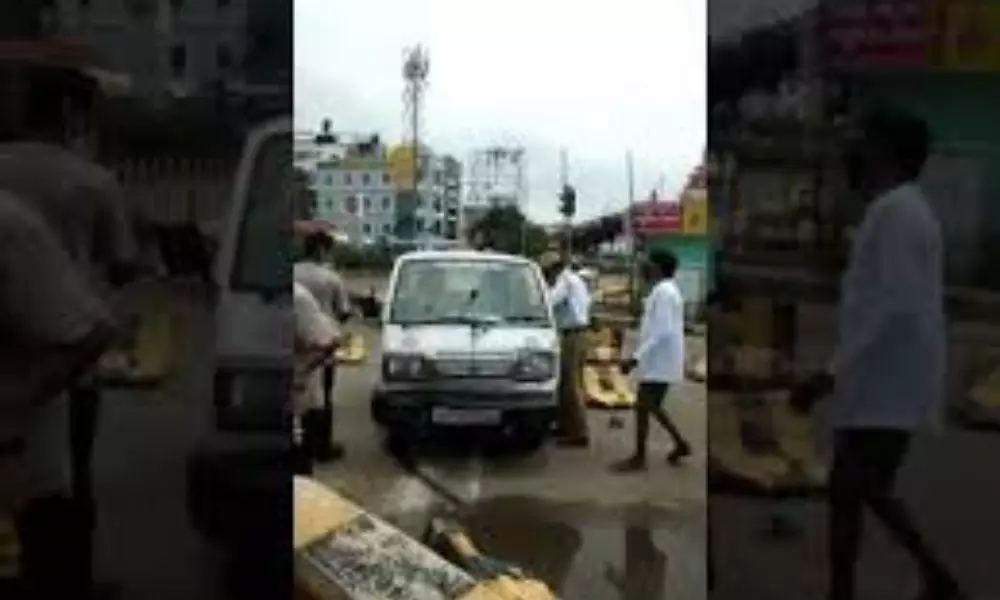 పారిపోవడానికి ప్రయత్నించే క్రమంలో డివైడర్ ను ఢీ కొట్టిన అంబులెన్స్ డ్రైవర్.. అడ్డుకున్న స్థానికులు, పోలీసులు..