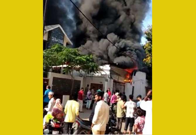 హైదరాబాద్ పాతబస్తీలో భారీ అగ్నిప్రమాదం సంభవించింది. ఫలక్నుమ పోస్టాఫీస్ దగ్గర చెప్పుల గోదాంలో పెద్ద ఎత్తున మంటలు చెలరేగాయి. దట్టమైన పొగతో మంటలు ఎగసిపడుతున్నాయి. అగ్నిమాపక సిబ్బంది మంటల అదుపునకు యత్నిస్తున్నారు. మంటలు ఇంకా అదుపులోకి రాకపోవడంతో గోదాం పక్కనే ఉన్న జి ప్లస్ భవనాన్ని పోలీసులు ఖాళీ చేయిస్తున్నారు. ప్రమాద కారణాలు తెలియలేదు. ఆస్తి నష్టం భారీగా ఉంటుందని అంచానా.