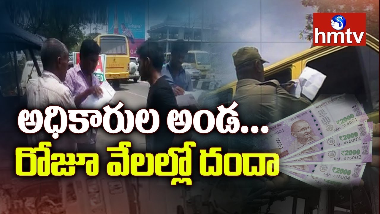 తిరుమలగిరిలోని రవాణా శాఖ కార్యాలయం అవినీతి దందాకు కేంద్రం. ఆర్టీఏ అంటేనే అవినీతికి కేరాఫ్అడ్రస్ అన్నంతగా మారిపోయింది ఇక్కడి పరిస్థితి. అధికారులు.. ఏజెంట్లు, దళారులతో కలిసి అందినకాడికి దోచుకుంటున్నారు. ఆన్లైన్ సేవలు అందుబాటులోకి తెచ్చినా వసూల్ రాజాలు తమదైన శైలిలో అక్రమాలకు పాల్పడుతున్న వైనాన్ని హెచ్ఎంటీవీ అత్యంత సాహసంగా తన కెమెరాలో బంధించింది. ప్రతి పనికి ఫిక్స్డ్ ధర నిర్ణయించి వాహనదారుల జేబులను కొల్లగొడుతున్న వైనాన్ని బట్ట బయలు చేసింది. ఈ దందాలో అధికారులు వెనకుండి చక్రం తిప్పుతుండగా, దళారులు దర్జాగా వసూళ్లు సాగిస్తున్నారన్న చీకటి కోణాన్ని వెలుగులోకి తెచ్చింది. కార్యాలయ క్యాబిన్లు దాటకుండానే ఎంవీఐలు సంతాకలు పెట్టేస్తున్నారు. దళారులు ఏది చెబితే దానికే సై అంటున్నారు. ఫిట్నెస్ లేని బస్సు పర్ఫెక్ట్గా ఉందంటూ సరిఫ్టికెట్ ఇచ్చిన దళారి... హెచ్ఎంటీవీ ప్రతినిధి నుంచి మూడు వేల రూపాయలు దండుకుంటూ కెమెరాకు అడ్డంగా చిక్కారు.