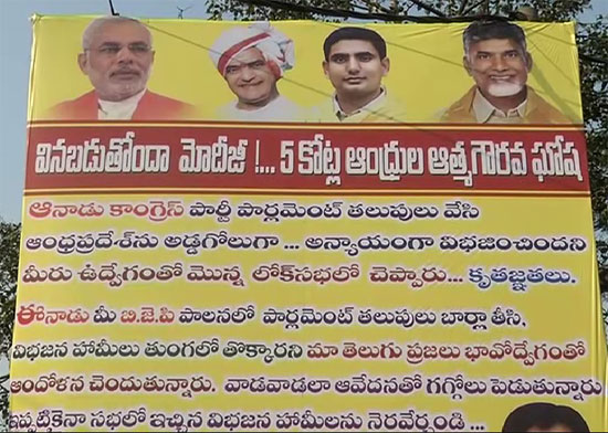 అమరావతిలో టీడీపీ, బీజేపీ మధ్య ఫ్లెక్సీ రగడ చెలరేగింది. మోడీజీ? ఇది 5 కోట్ల ఆంధ్రుల ఆత్మ గోషా, ఆనాడు కాంగ్రెస్ పార్లమెంట్ తలుపులు మూసి ఆంధ్ర ప్రదేశ్...